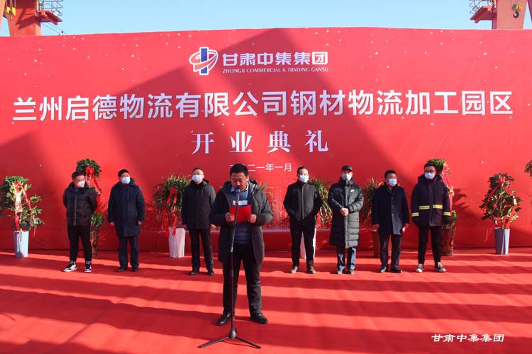 2021年1月12日上午10:18分,甘肅中集實(shí)業(yè)集團(tuán)有限公司旗下蘭州啟德物流有限公司河口鋼材物流加工園區(qū)開業(yè)慶典在甘肅物產(chǎn)集團(tuán)河口物流園隆重舉行。甘肅中集實(shí)業(yè)集團(tuán)有限公司黨委書記、董事長(zhǎng)周啟濤隆重宣布物流園開業(yè)。酒鋼集團(tuán)、八一鋼鐵集團(tuán)、內(nèi)蒙古包鋼集團(tuán)、甘肅省物產(chǎn)集團(tuán)河口物流園、甘肅省鋼材商會(huì)、物流園轄區(qū)及公司合作伙伴等100余名領(lǐng)導(dǎo)嘉賓參加開業(yè)慶典。